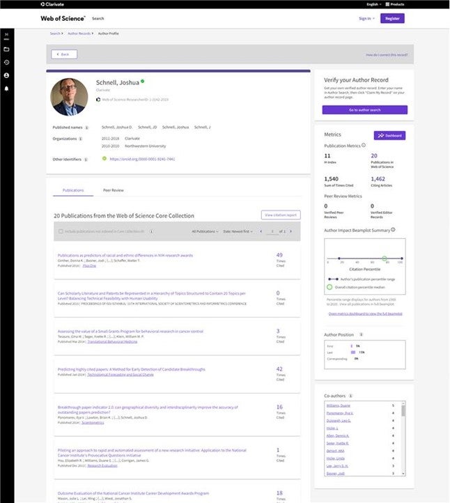 The next generation of Web of Science Researcher Profiles