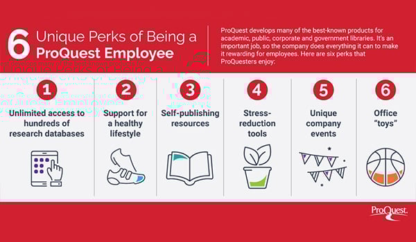 - 自我出版资源 ——你对一个满是书目爱好者的公司还有什么期望?梦想写下一本畅销书的 ProQuest 员工可以免费获得 ISBN 和其他自出版工具。